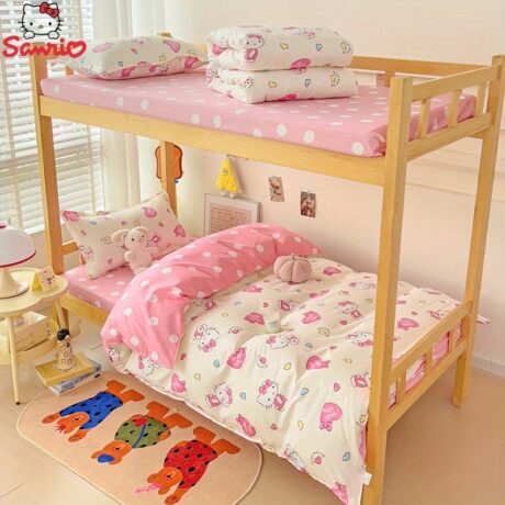Authorized New skin-friendly aloe vera cotton printed dormitory bunk bed four-piece set candy kt cat