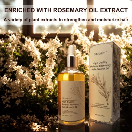 DRUGGIST Rosemary Oil For Hair Growth & Healthy Scalp, 3-Pack – Pre-Wash Scalp & Hair Oil Infused With Biotin, Hair Growth Serum & Hair Strengthening Treatment, Nourishing & Volumizing, Recycled Packaging