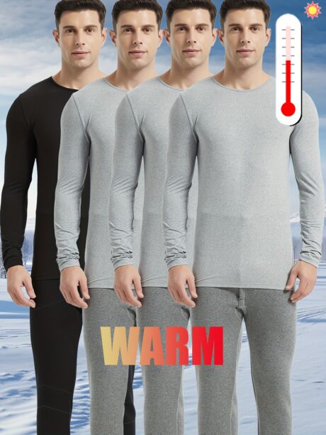 4 Pack Men’s Inner Fleece Thermal Undershirt Soft Warm Top Underwear Men Warm Comfort Functional Underwear Thermal Underwear